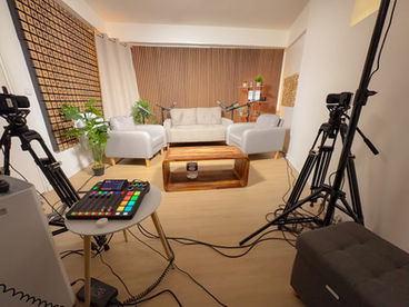 Oui, notre studio de podcast est équipé pour accueillir des sessions de 1 à 4 personnes. Veuillez nous informer du nombre d'invités à l'avance pour que nous puissions organiser l'espace en conséquence.